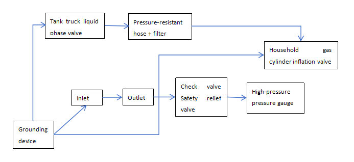 सोने के सुरक्षित भरने के लिए सुनहरा नियम इस प्रकार है: सबसे पहले, भरने से पहले गैस सिलेंडर का अवशिष्ट दबाव 0.05 एमपीए से अधिक होना चाहिए (हवा को मिश्रण करने और एक विस्फोटक पदार्थ बनाने से रोकने के लिए), और स्थैतिक बिजली ग्राउंडिंग प्रतिरोध का पता लगाना ≤ 100 ω होना चाहिए; दूसरे, भरने के दौरान, प्रवाह दर को स्थिर बिजली संचय से बचने के लिए <0.5 m/s होना चाहिए, और टैंक का तापमान 40 ℃ से अधिक होने पर वास्तविक समय की निगरानी को तुरंत रोकने की आवश्यकता होती है; अंत में, भरने के बाद, एक दबाव प्रतिधारण और रिसाव का पता लगाने का परीक्षण किया जाता है। साबुन पानी सभी इंटरफेस पर लागू किया जाता है ताकि यह जांच की जा सके कि क्या कोई बुलबुले हैं, और नली से अवशिष्ट तरल को बरामद करने की आवश्यकता है। प्रत्यक्ष निर्वहन निषिद्ध है।